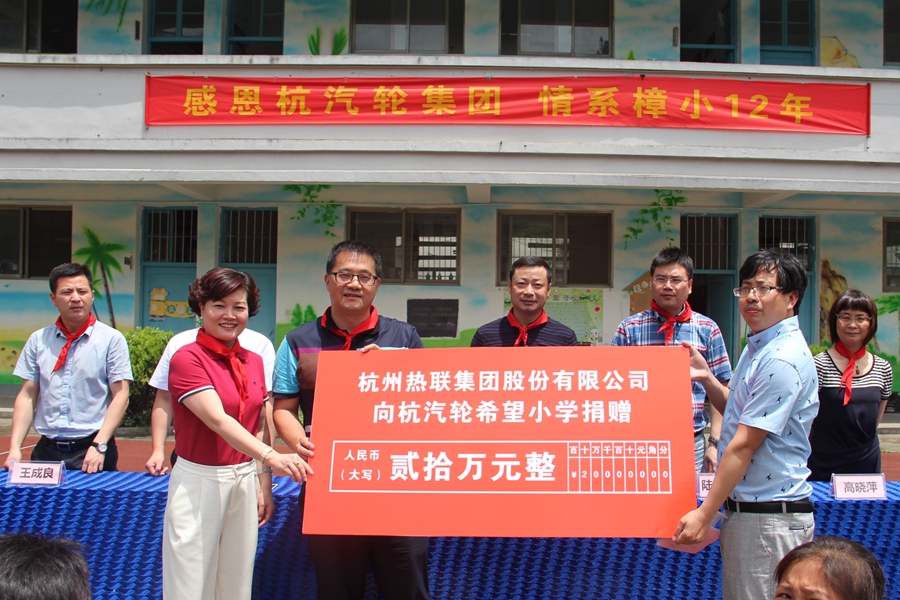6月7日,對于淳安縣中洲鎮杭汽輪希望小學的同學們來說,是溫暖而又特別的一天,因為熱聯集團牽手杭汽輪希望小學愛心捐贈儀式在該校操場上舉行。杭汽輪集團黨委副書記李士杰、黨辦主任高曉萍,熱聯集團總經理呂永洪、黨總支書記陳瑾等一行走進了杭汽輪希望小學,不僅為全校120余名同學送去了體育用品和書籍,同時我司向杭汽輪希望小學捐贈20萬元人民幣,助力該校宿舍樓建設。